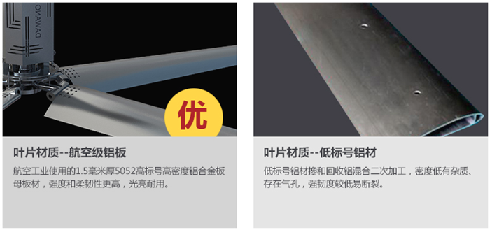 金凡斯大風扇采用5片1.5mm厚的5052航空級鋁板經激光切割后專用模具折彎成型;變截面流線型是指葉根到葉尖逐漸變窄、變薄至尾部加寬,根至尾部寬30.4~19.2 cm;
